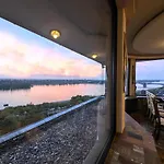 L'hôtel était agréable et nos chambres donnaient sur le fleuve. Du Wi-Fi gratuit y était disponible...
